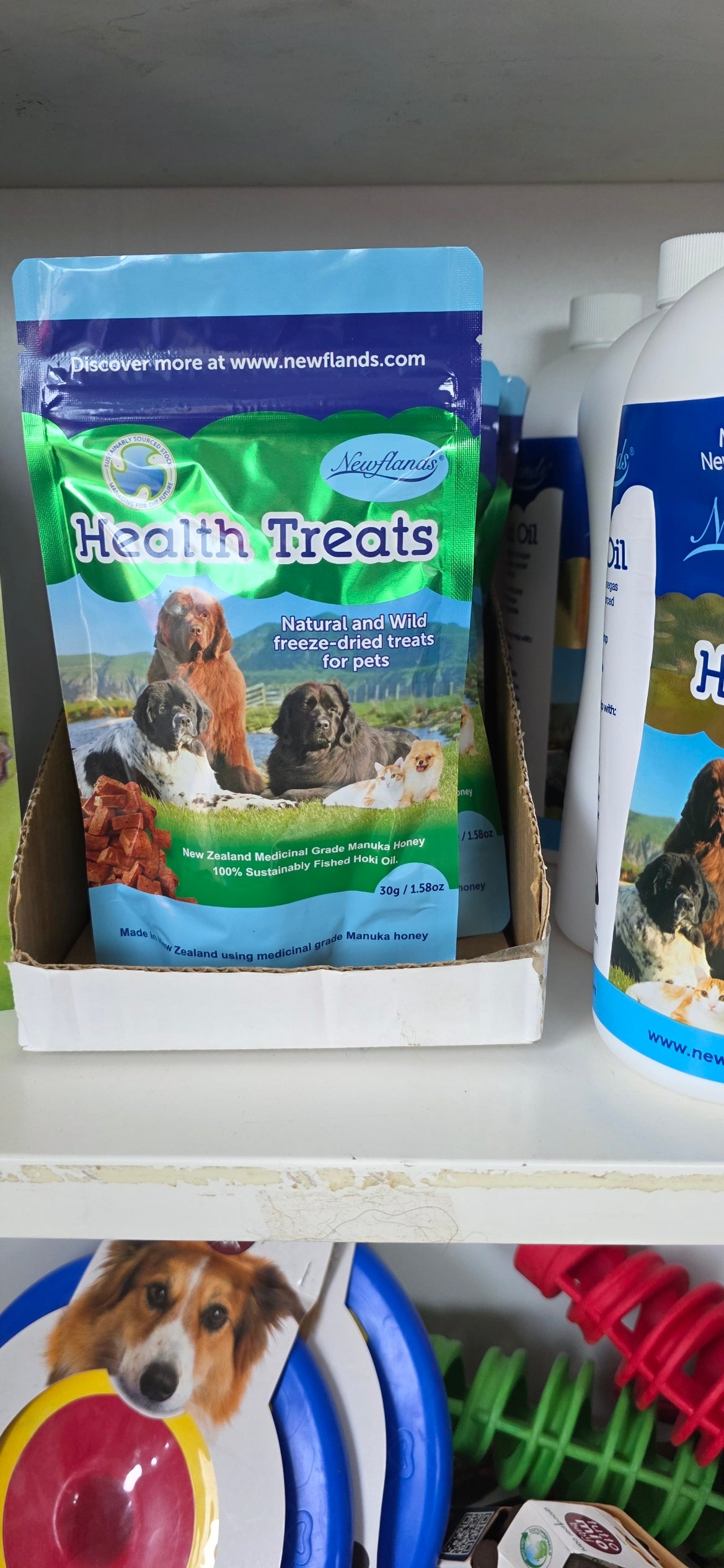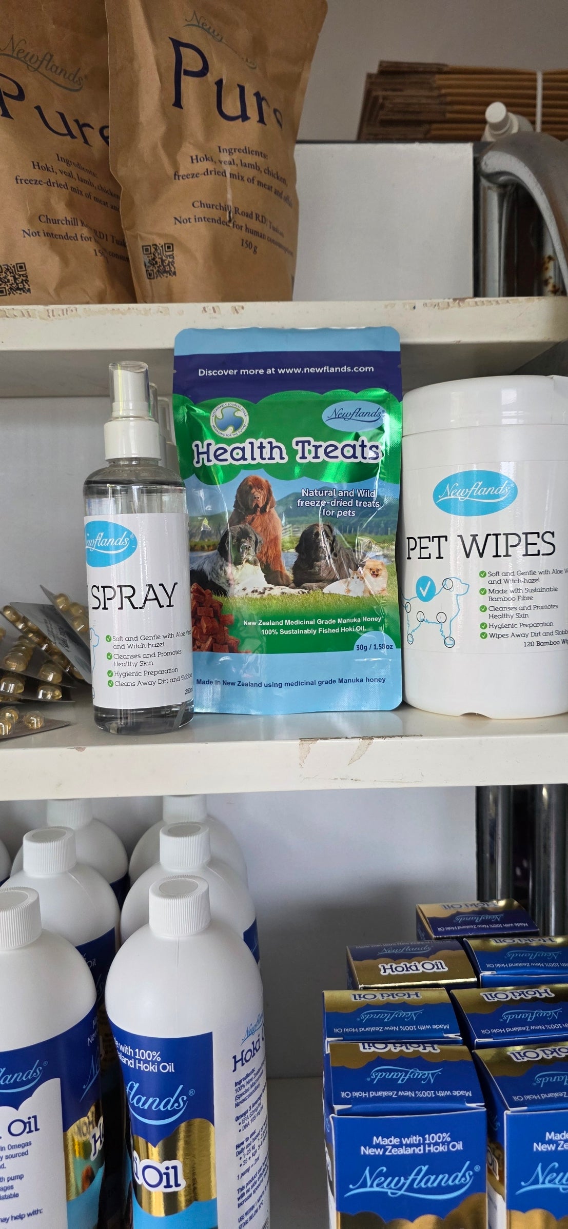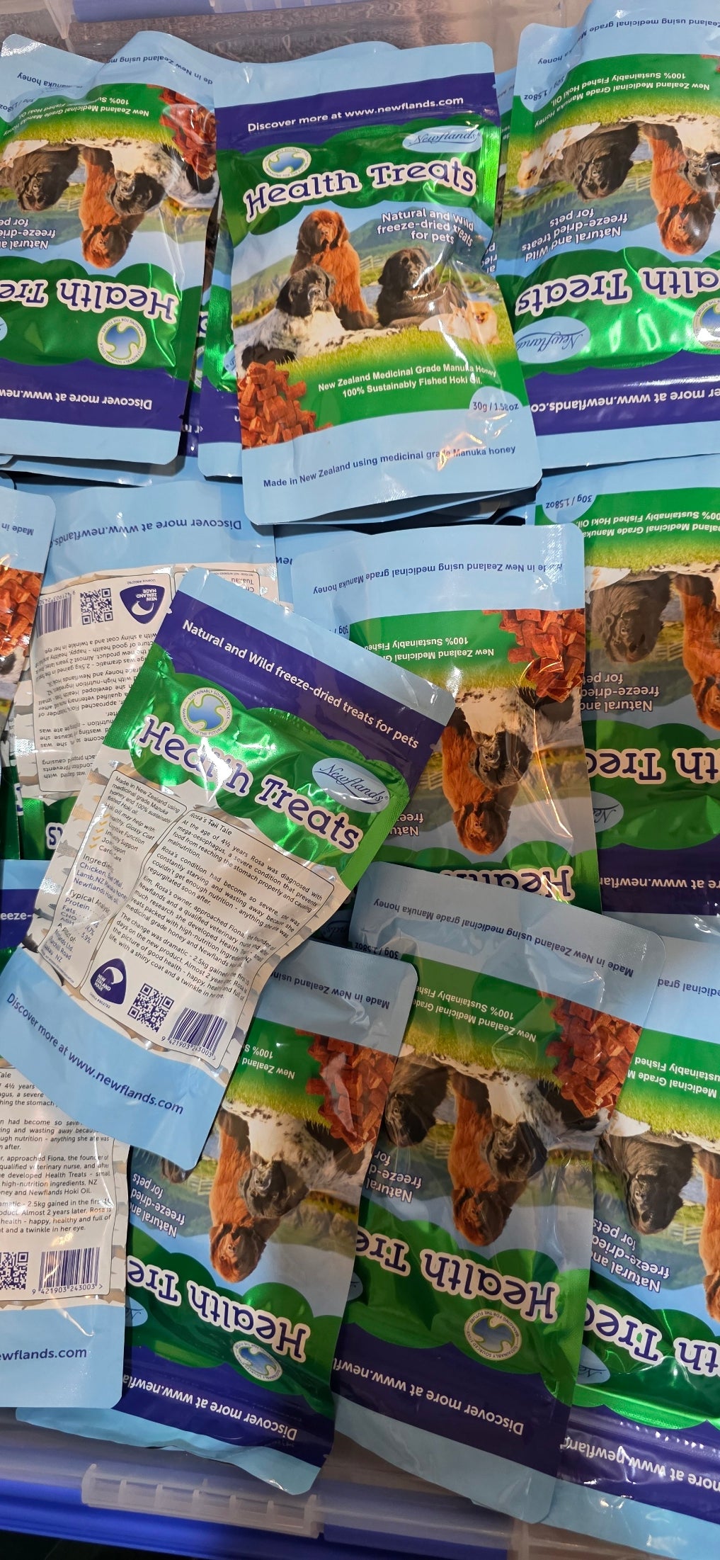 Ein fester Leckerbissen, der beim Essen knuspert und leicht glänzt, voller gefriergetrocknetem rotem Fleisch und Innereien, kombiniert mit Newflands Hoki-Öl und 20+ UMF-Honig von RARE Honey. Alle neuseeländischen Zutaten werden in der Hawkes Bay unter Exportbedingungen speziell für Newflands hergestellt.